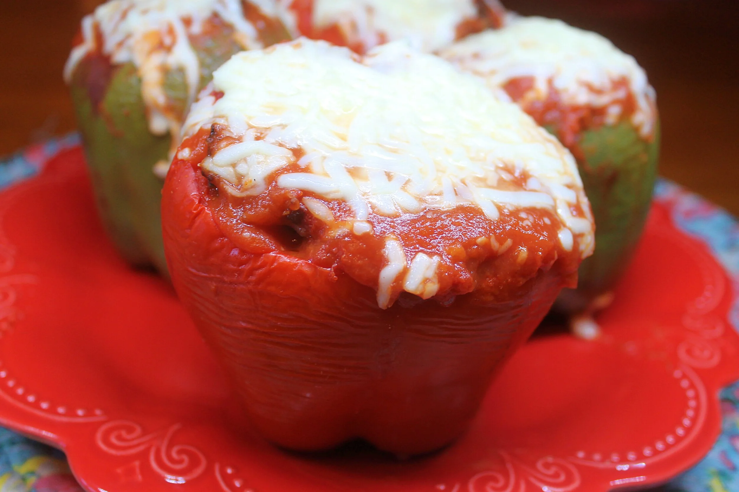 Bake for 1 hour in the preheated oven until the peppers are tender. Using a second can of tomato sauce baste each pepper with tomato sauce after 15 and 45 minutes to keep it moist. In the last fifteen minutes top with mozzarella cheese on each pepper.